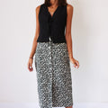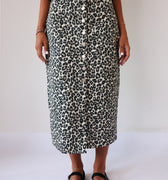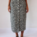 Unleash your wild side with our Button-Front Leopard Skirt. This striking piece features a bold leopard print, adding a touch of fierce style to your wardrobe. The button-front design not only offers a classic look but also allows for easy wear and adjustable comfort.