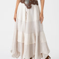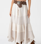 Featuring a carefully curated mix of patterns and textures, this skirt brings a playful yet sophisticated touch to any outfit. Each patchwork design is thoughtfully arranged, making every piece one-of-a-kind.
