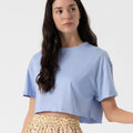 Designed with a flattering, boxy silhouette and a slightly shorter length, this tee adds a contemporary edge to any outfit.
