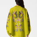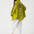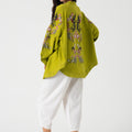 Add a touch of elegance and nature-inspired beauty to your wardrobe with our Green Floral Embroidered Back Kimono. This unique piece features intricate floral embroidery on the back, creating a stunning contrast against the soft green fabric.